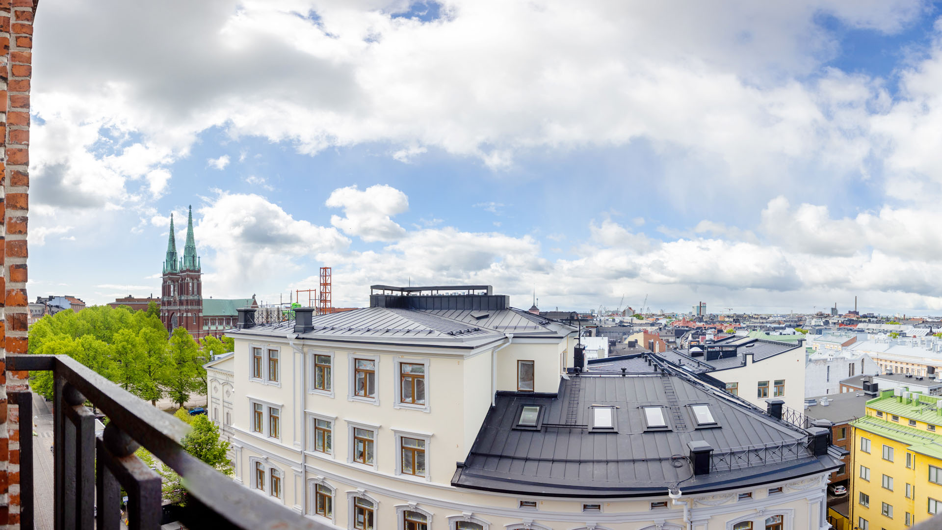 Glorian jugend-henkiseen torniin sijoittuva ullakkotoimisto on tasokkaiden tilojen joukossa täysin oma lukunsa: se on saumatonta toiminnallisuutta korostava kahden kerroksen kokonaisuus, joka huokuu valoisaa ateljeetunnelmaa ja historian siipien havinaa. Uniikin ullakkotoimiston ikkunoista avautuu fantastiset maisemat kantakaupungin kattojen ylle.